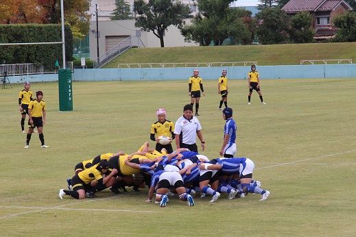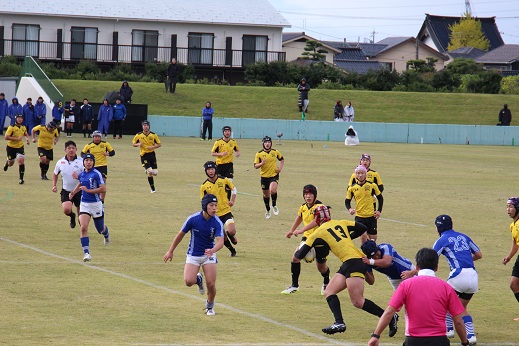年末の花園出場をかけた全国高等学校ラグビーフットボール大会富山県大会決勝が11月3日(月:文化の日)に行われ、本校ラグビー部は合同(砺波・砺波工業・高岡第一・南砺福野・高岡)(黄色のユニフォーム)として富山第一高校と対戦しました。