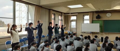 3年生の先生方は生徒たちに向けエールをおくり、最後に全員で円陣を組み健闘を誓いました。
