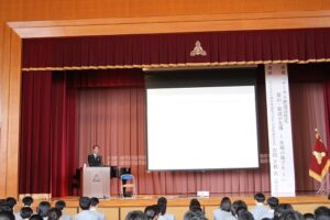 4月17日は砺波高校の創立記念日です。今年で創立117年を迎え、記念講演として吉田千秋さん(高35回、ひたちなか海浜鉄道株式会社代表取締役社長)から「ローカル鉄道活性化 富山・砺波が先導~茨城の地でも」と題してお話しいただきました。