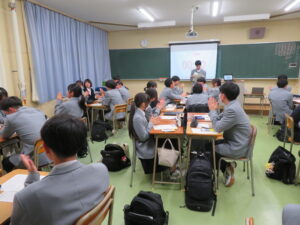 図書委員会 1学年統一HRビブリオバトル 2026年1月20日 / kikaku 1月14日(水)、1年生のHRの時間にミニビブリオバトルを行いました。 図書委員の進行により、グループごとに本を紹介し合い、質問タイムでは、活発な発言が相次ぎました。 高校生となって初めてのビブリオバトルでしたが、本の面白さを伝え合うことでクラスメイトの新たな一面を発見した楽しい時間となりました。