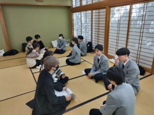 富山大学生が砺波高校生にインタビューしました 2025年12月25日 / kikaku 富山大学人文学部は「人文地理学フィールド演習」の一環として砺波市との共同研究で「砺波市人口ビジョン」の策定に取り組んでいます。 12月23日(火)に学生7名が本校を訪れ、2年生9名に砺波市の将来像についてインタビューしました。これからを担う若い世代の意見を取り入れながら人口ビジョンを策定されます。