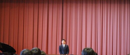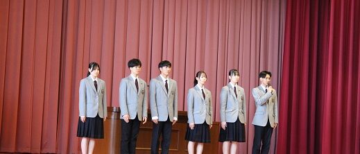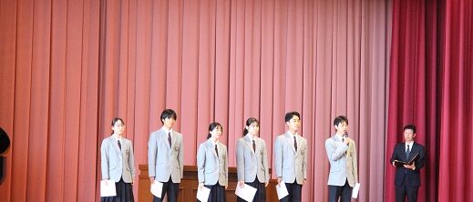 終了後、旧生徒会執行部が退任のあいさつをし、新執行部認証式が行われ、生徒会長が活動の抱負と協力を呼びかけました。