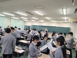 海外研修事前研修 2026年1月26日 / kikaku 3月の海外研修に向けて、参加生徒は事前研修を行っています。 1月19日(月)に南砺市友好交流協会から講師をお招きし、現地での活動やホームステイで役立つ英語フレーズ、現地での生活についてお話しいただきました。 実際にグループで会話する場面もあり、活気あふれる研修となりました。