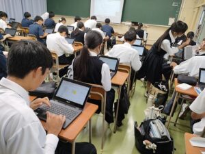 1年総合的な探究の時間 2025年10月16日 / kikaku 1年生は2学期の総合的な探究の時間に理数探究基礎を教材としてデータ分析を学習しています。 各クラスでgoogleスプレットシートを使って実習を行っています。今後、富山大学の先生から、より専門的なデータ分析について講義をしていただく予定としています。