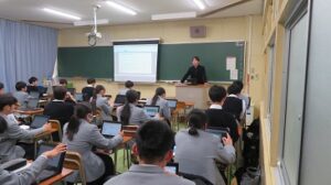 1年総合的な探究の時間 2025年12月1日 / kikaku 11月18日(火)に1年生は総合的な探究の時間に、データ分析の手法を学びました。10月に続き富山大学の先生をお招きし、事前に生徒からとったアンケートをもとに相関関係などについてデータ処理の観点から講義していただきました。