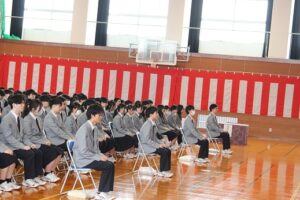 卒業式を来週に控えた2月27日(金)に卒業生154名は第78回砺波高等学校同窓生として礪波同窓会に入会しました。忠田同窓会長は礪波同窓会の歴史と活動内容を紹介し、歓迎のあいさつを行いました。