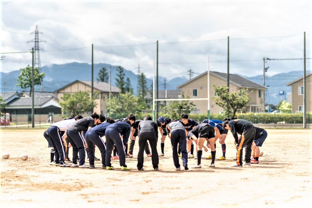 ラグビー部は花園への出場11回(県大会優勝は12回)の戦歴です。毎日限られた練習時間の中で集中力と頭脳プレーで勝負します。8月上旬の菅平合宿では涼しい高原で県外の高校と合同練習、練習試合を行っています。また、2015年には7人制ラグビー大会富山県予選で優勝し、全国大会に出場しました。